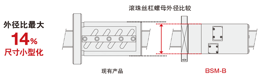 BSM-B的螺母外径更加细长,有助于节省空间。