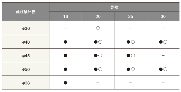 ●:BSM型 ◯:BSM-B型(细长螺母型)