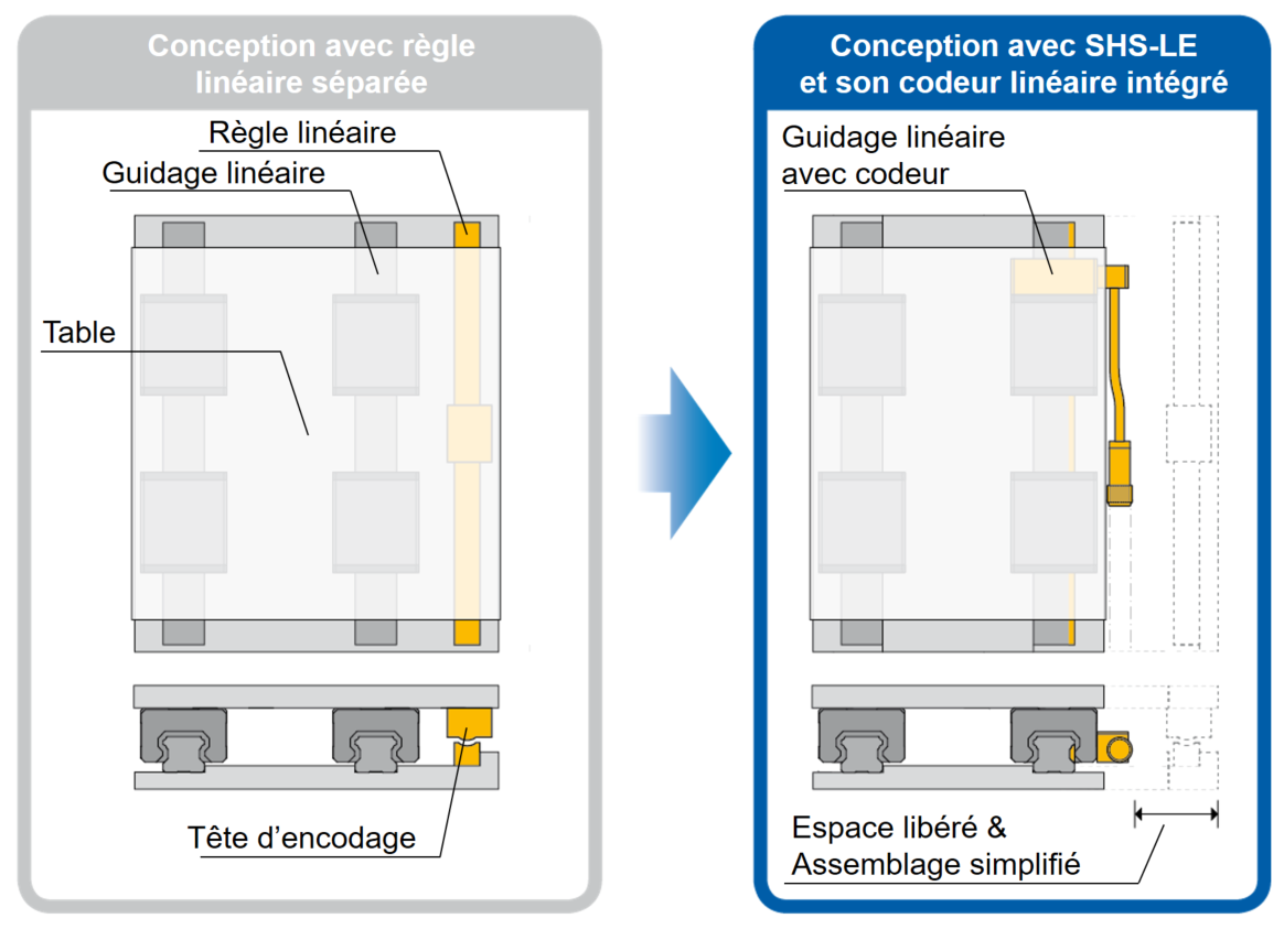 Rend la conception et le montage plus simples car il n’est plus nécessaire d’intégrer une règle linéaire séparée.